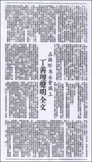 中华民国奥林匹克委员会副主席丁善理六日在 国际奥委会第八十一届大会上就中国会籍问题发表 声明。声明全文如下:
